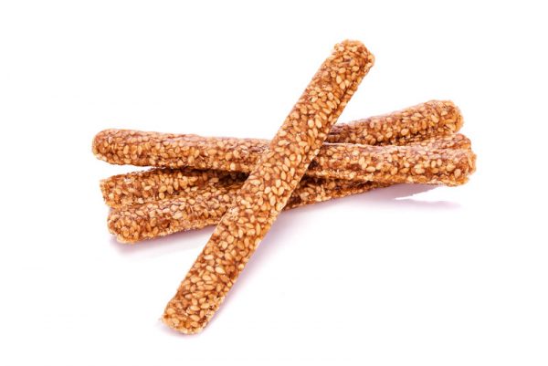 Składniki: ziarno sezamu łuskanego (44%), syrop glukozowy, cukier